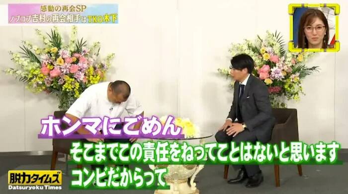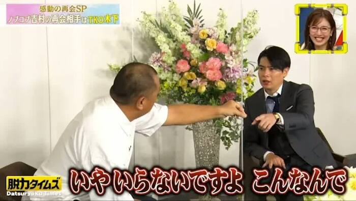 そして、再び吉村さんが別室で待っていると、そこにTKOの木下隆行さんが現れました。
