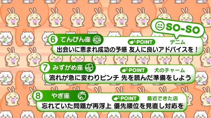 『めざましテレビ』で放送中の「ちいかわ占い」 テレビ放送がない日はお休みで、月~土:朝7時以降に更新予定です。