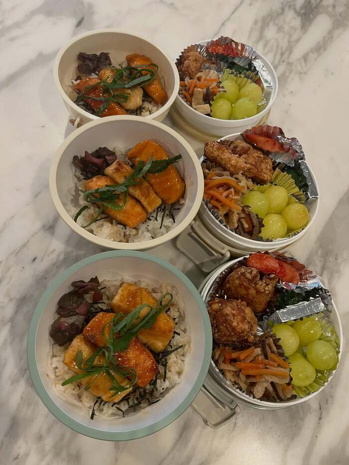 そして、投稿日当日はというと、「今朝は真鯛とサーモンを照り焼きにして丼にしたよ」と2段弁当を作ったことを報告した山口さん。