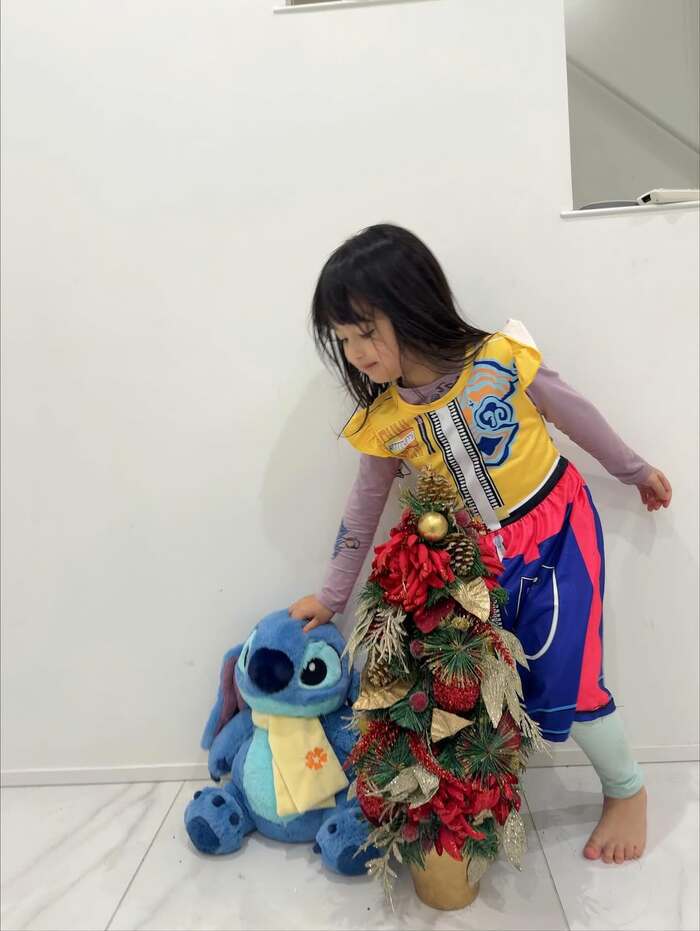 さらに、小さなツリーと東京ディズニーランドで購入したというマフラーを巻いたスティッチのぬいぐるみも一緒に飾ってあるとのこと。