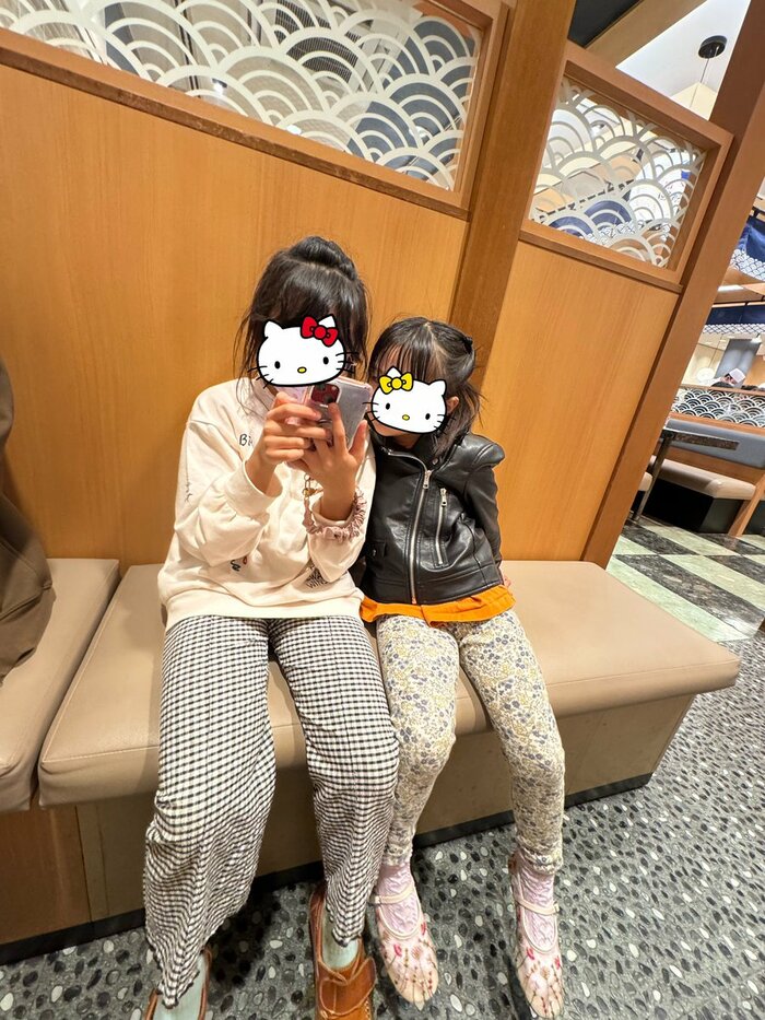 過去の投稿では、椅子に座り、スマホを見る長女にぴったり寄り添う次女の姿を公開していました。