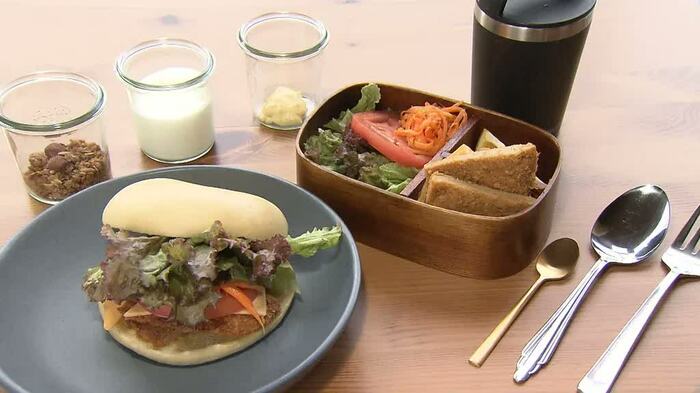 なるべく地元の食材を使用していると語る田村さんの説明を聞きながら、出来上がったベーグルサンドを頬張った松岡さんは、「フィッシュカツがものすごくおいしい」と目を閉じて味わいます。