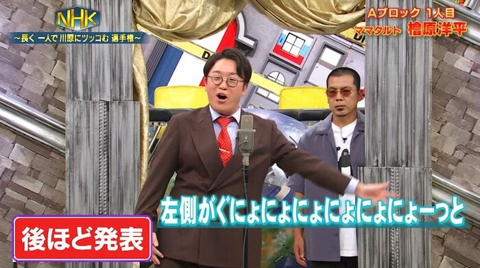 檜原:(体の)左側がぐにょにょにょにょにょーっとデカいんやったら(引っかかるのは)わかるけど…さっき見たら、普通の手しかなかったのに、おかしいですよ!