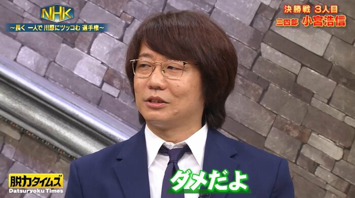 小宮さんは、間が持たずにツッコミも絶不調のまま終了。「ダメだよ」と肩を落としました。(記録:41秒40)