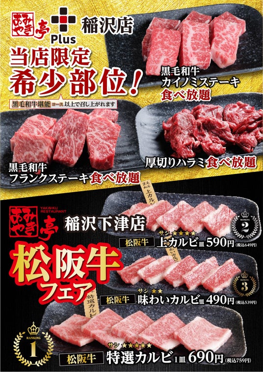 あみやき亭稲沢下津店、あみやき亭Plus稲沢店では、