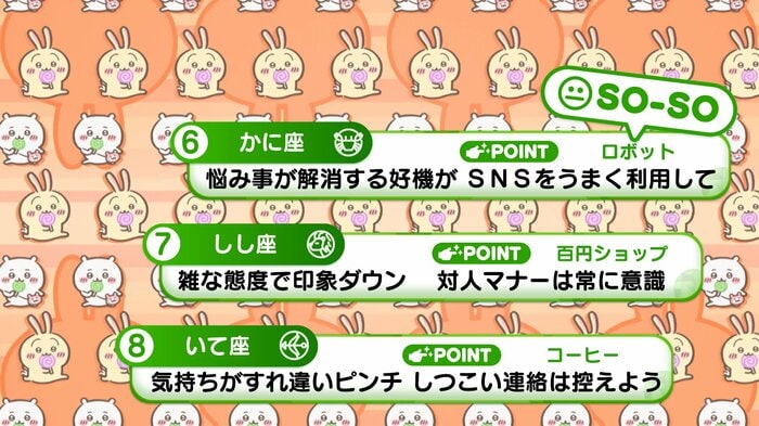 6位から8位の星座、ラッキーポイントはこちら。