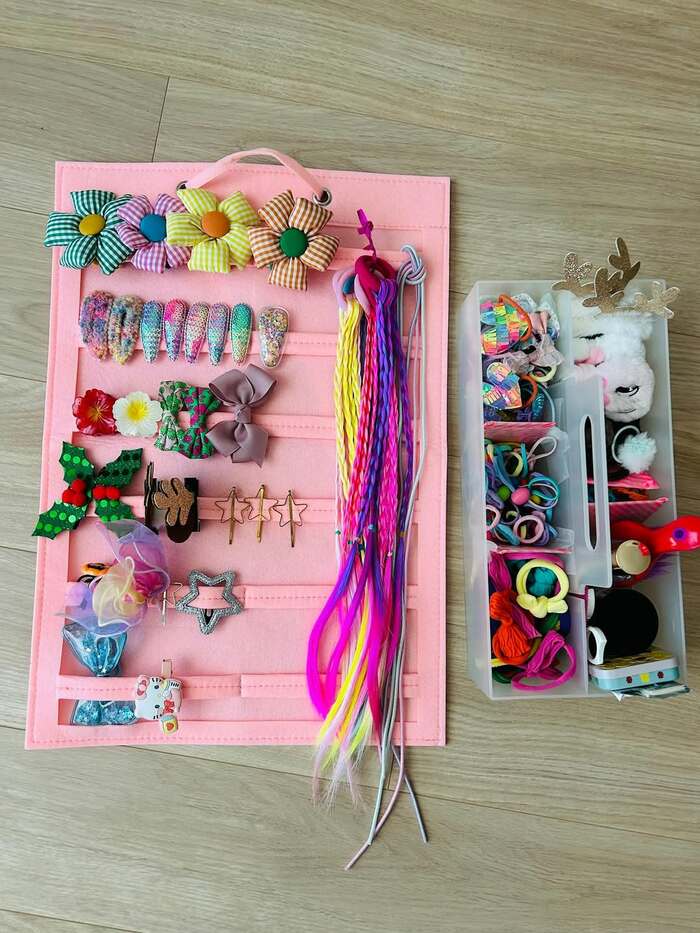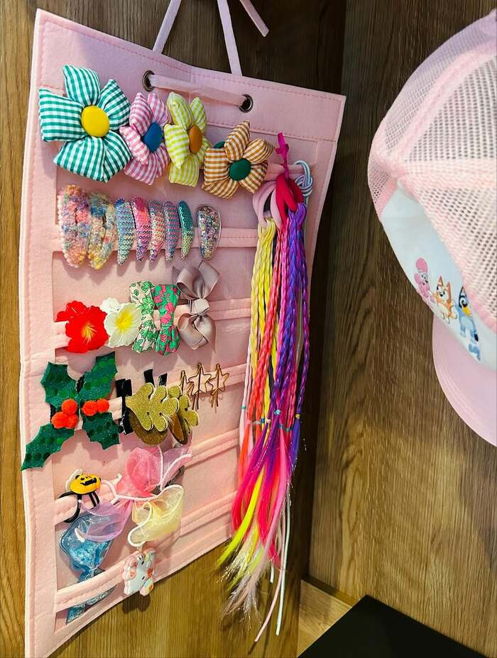 4歳の娘のかわいらしいヘアアレンジやアクセサリーの壁面収納アイデアを披露しました。