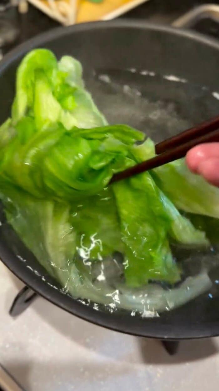続いては沸騰させたお湯にレタスを20秒くらい潜らせるだけの【レタしゃぶ】。