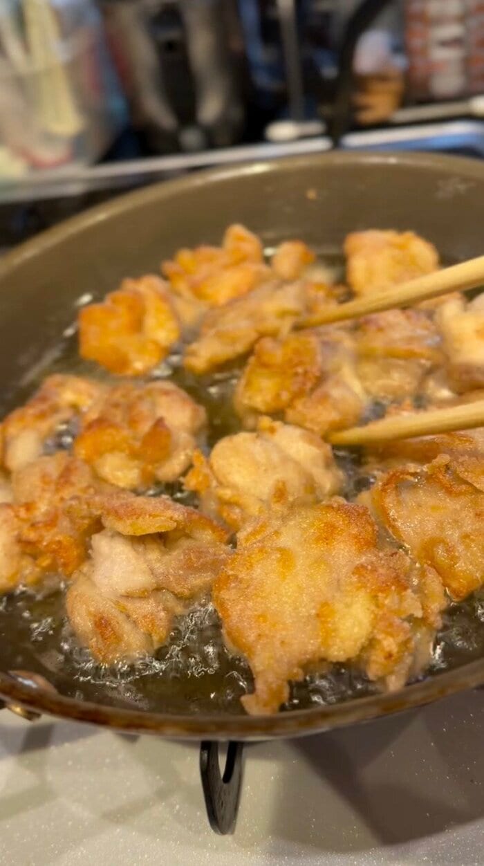 さらに動画はここで終わらず、唐揚げを作り始める西山さん。