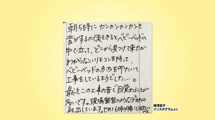 「子供が早朝からリモコンでベッドの枠を叩く音で起こされる」という、横澤さんの最近のお悩みも紹介されました。
