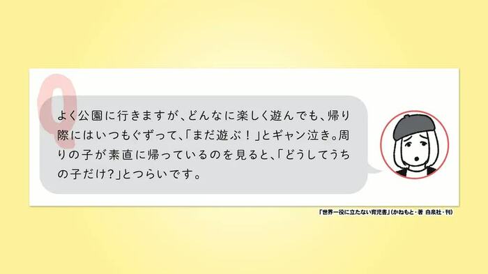 話題の書籍「世界一役に立たない育児書」の著者・かねもとさんも、育児書に書いてあることと自分の状況を比べては落ち込むことが多く、そんな自分のためにこの本を書いたといいます。