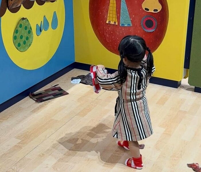 この日は親子でよみうりランドを訪れたようで、絵本をテーマにしたスペースでパネルに囲まれながら遊んでいる様子が写し出されています。
