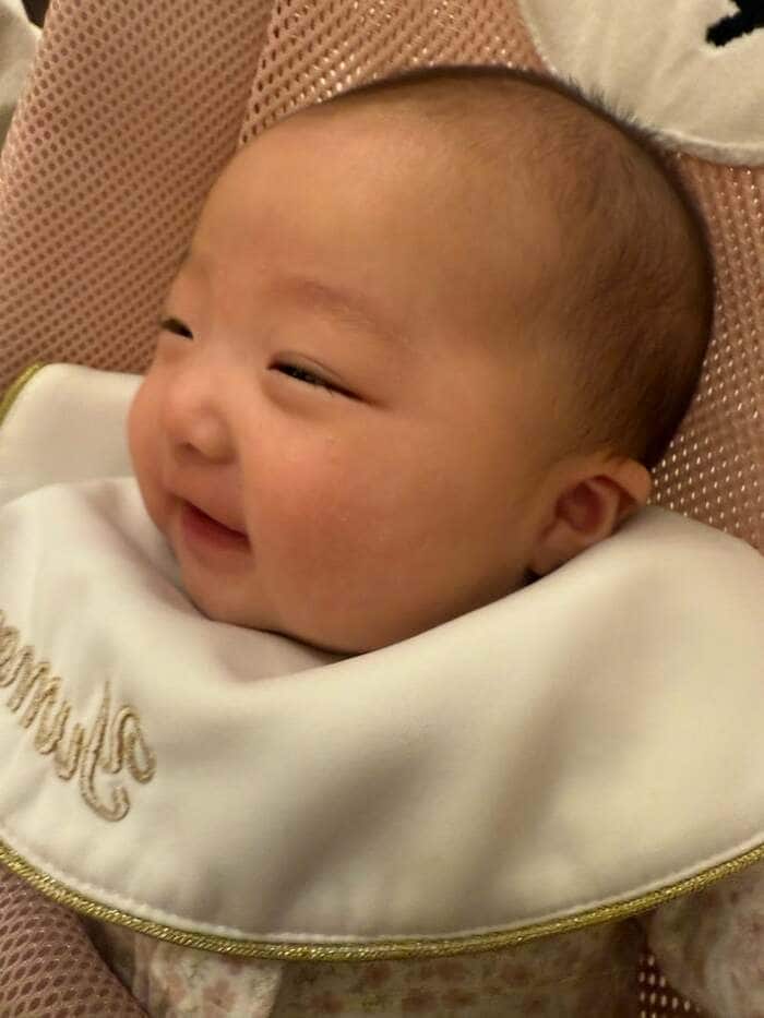 生後3ヵ月次女のにこにこ笑顔ショットを披露
