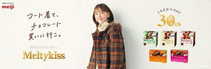 それに合わせ、「メルティーキッス」の広告キャラクターを務めて12年目になる新垣さんが、新グラフィック広告・新音声CMに登場します。