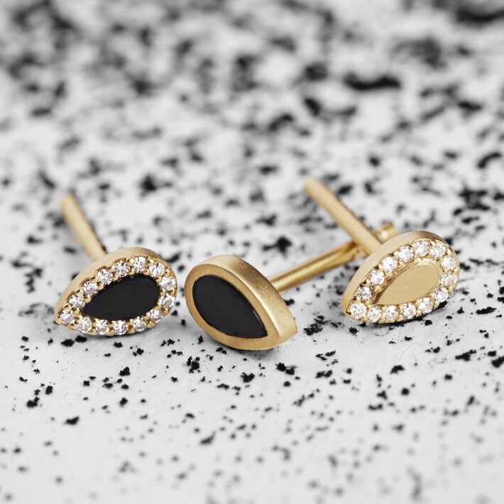 左から)18Kゴールド オニキス ダイヤモンド ピアス ¥69,300 / 18Kゴールド オニキス ピアス¥59,400/ 18Kゴールド ダイヤモンド ピアス¥66,000 すべて税込