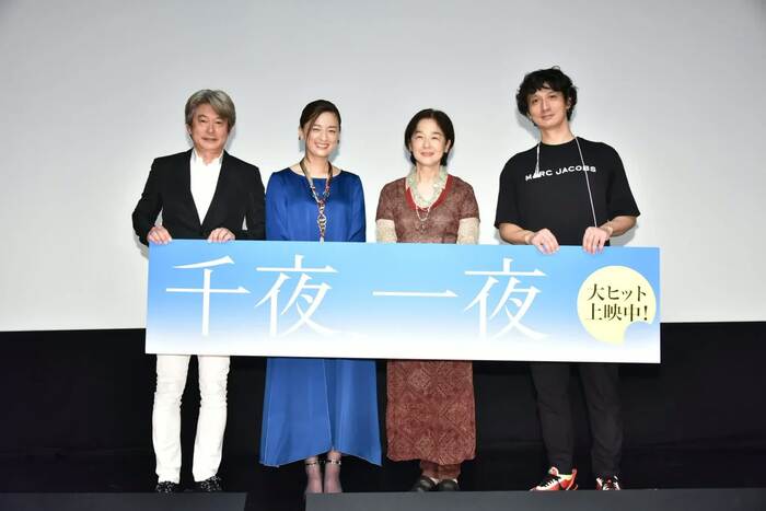 10月8日、「千夜、一夜」の公開記念舞台挨拶が行われ、田中裕子さん、尾野真千子さん、安藤政信さん、久保田直監督が登壇しました。