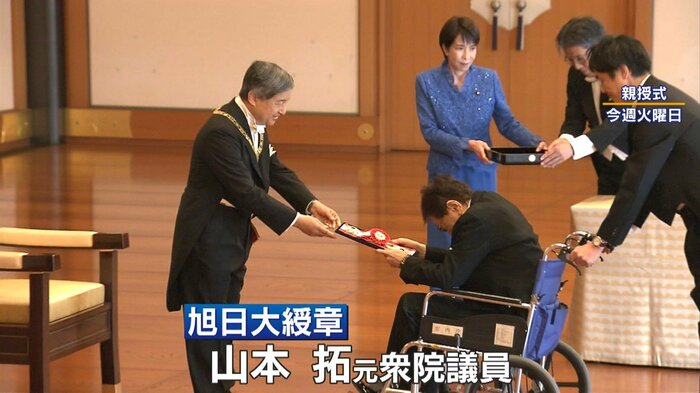 中でも注目を浴びたのが、旭日大綬章を受章した、高市早苗首相の夫であり元衆院議員の山本拓氏です。