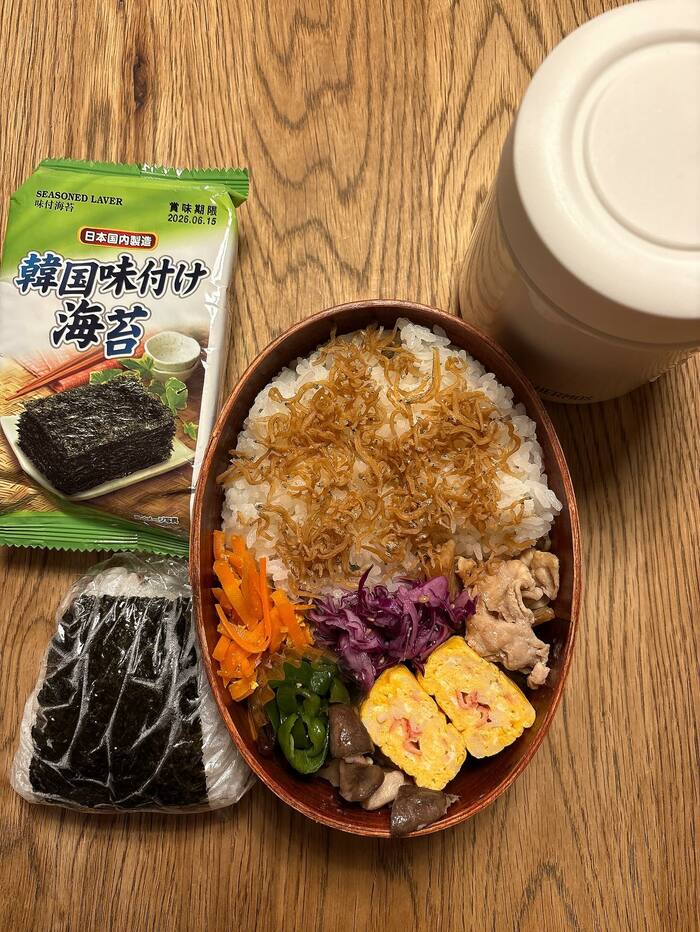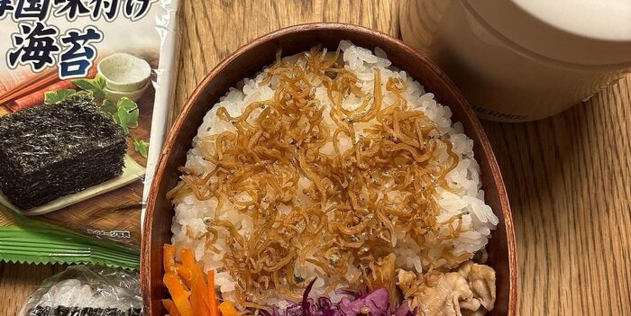 お弁当箱の半分には、じゃこをたっぷりかけたご飯。