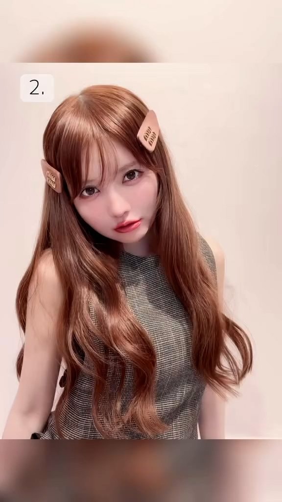 ドールっぽくしたという髪は、部屋の明かりに照らされてツヤツヤと輝いています。両サイドに付けられたバレッタがとってもかわいいですね♪