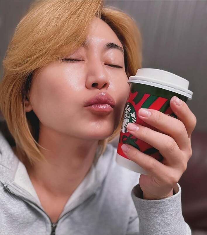 さらに、グレーのパーカー姿で、スターバックスのカップを持ったオフ感あふれるカットも。