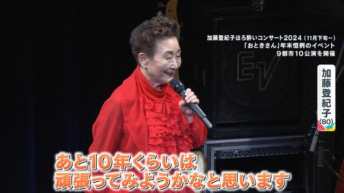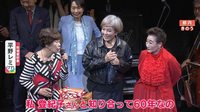 歌手活動60周年を祝う記念パーティーが開かれ、デヴィ夫人や、ファッションデザイナー・コシノジュンコさん、南こうせつさんや渡辺えりさんなど、加藤さんと親交のある豪華ゲストら約300人が祝福に駆けつけました。