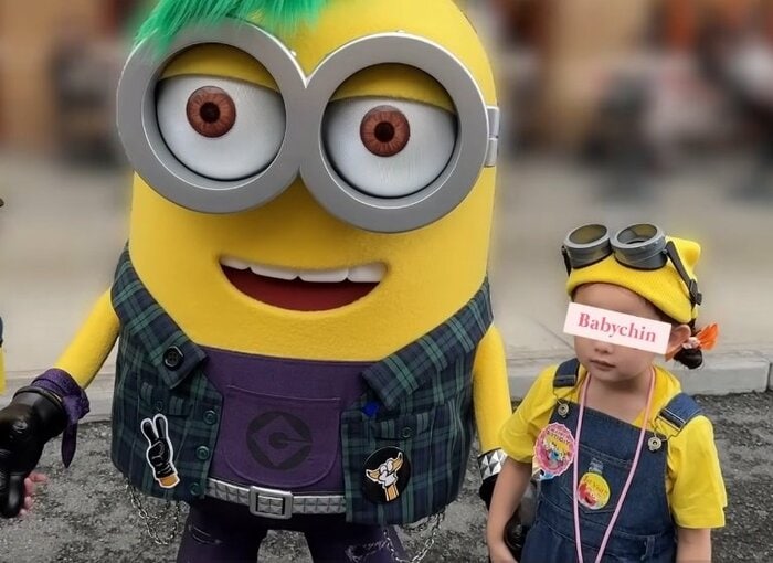 動画冒頭、ミニオンコーデに身を包んだ“ベビちん”がうつし出されます。