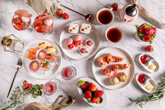 テーマカラーで楽しむ苺のアフタヌーンティーを 2 期にわけて販売