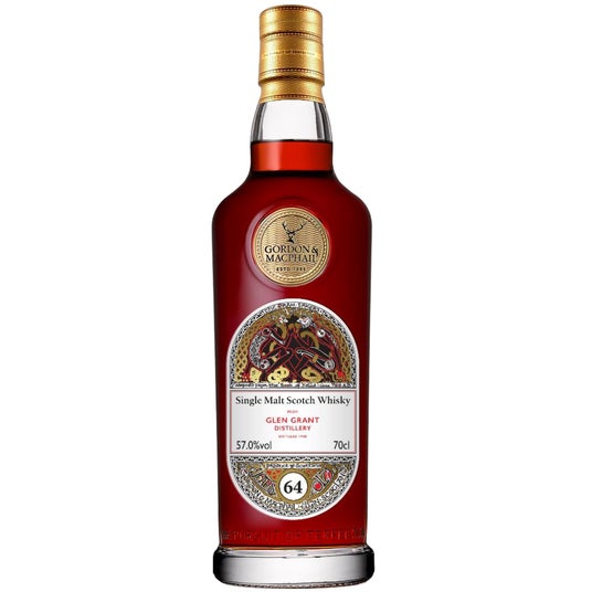 本シリーズは、9世紀の写本『ケルズの書』の装飾様式に着想を得た意匠で、グラスを掲げる二人の“ドラム・テイカー”が象徴。1980年代初頭には「マクファイルズ 45年」にも採用されるなど、GMの長熟表現を体現してきたラベルです。