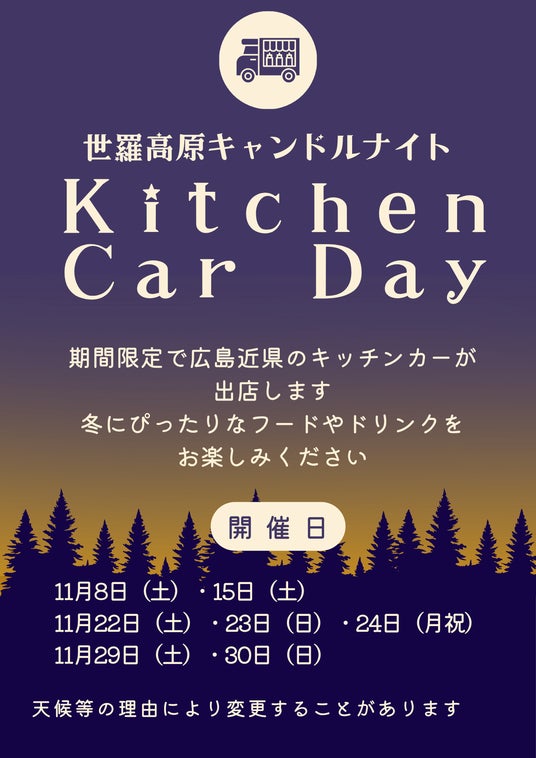 キッチンカー出店11月はキッチンカーが会場に出店します。チュロスや焼き芋などのスイーツから、ピザや焼きそばなどがっつりメニューまで、冬にぴったりなフードやドリンクをお楽しみください。