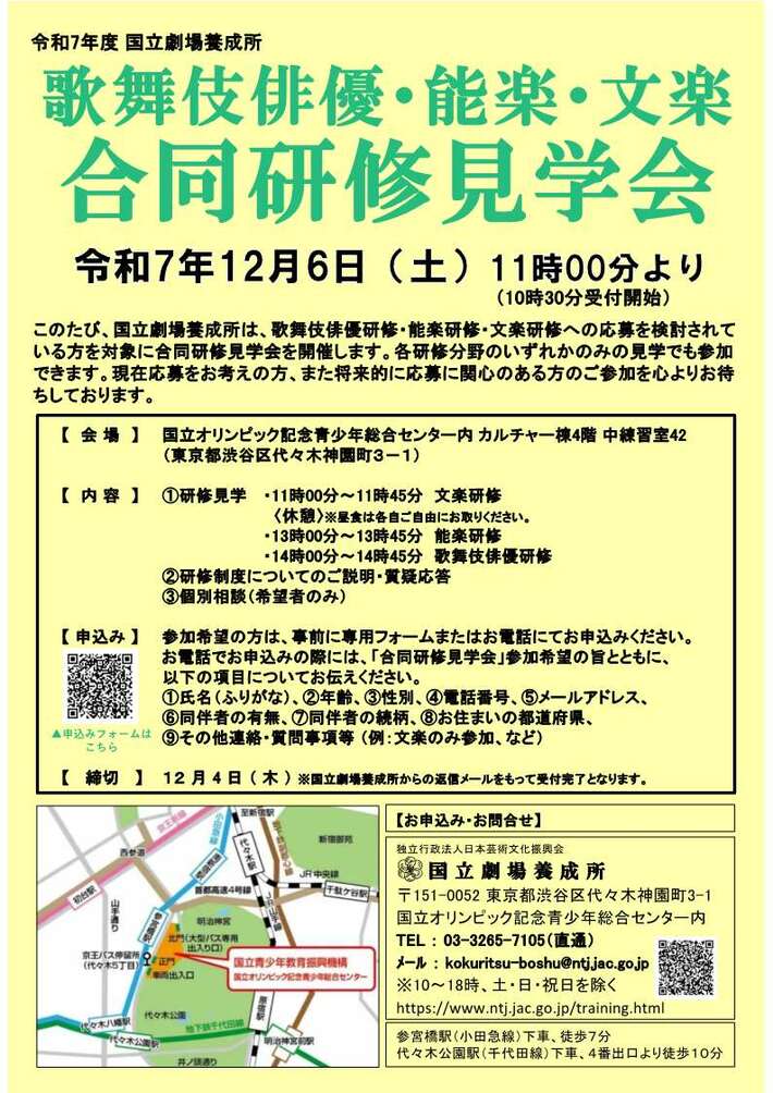 令和7年度 歌舞伎俳優・能楽・文楽 合同研修見学会を東京にて開催します