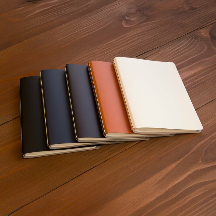 表紙本体は、ブラック、ネイビー、ダークブラウン、キャメル、ホワイトの5色展開です。(※ネイビーとダークブラウンは12月中旬発売予定)