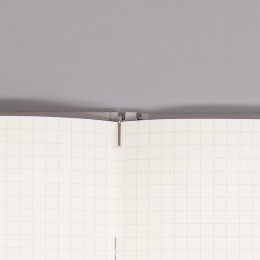 フックバーに中綴じノートの中心を引っ掛けている状態です。