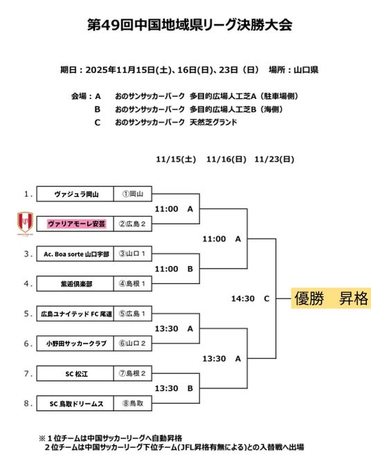 第49回 中国地域県サッカーリーグ決勝大会試合情報が決まりましたのでお知らせいたします。