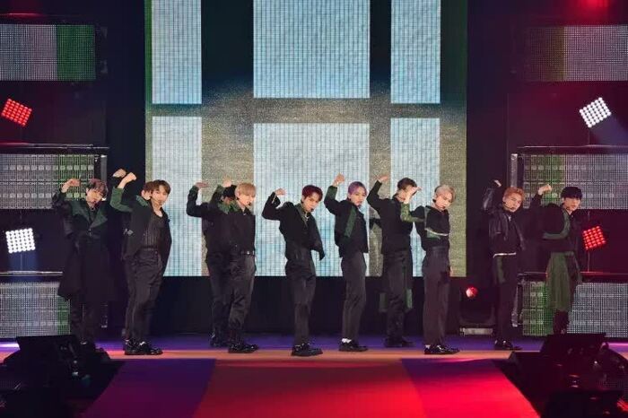 ライブのトリを務めたのは、11人組グローバルボーイズグループJO1です。黒色のシックな衣装に身を包み、デビュー曲「無限大」を披露すると観客の熱気も急上昇!その後も「Walk It Like I Talk It」「YOLO-konde」を披露し、会場を沸かせました。