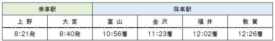 ※黒部宇奈月温泉、富山、新高岡、金沢、小松、加賀温泉、芦原温泉、福井、越前たけふでは降車のみとなります。乗車はできません。