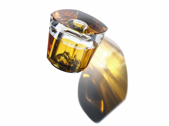 AmbientecのロングセラーXtalの美学と構造を継承した新モデル。クリスタルガラスの質感を際立たせるシンプルなフォルムと、積層されたクリアガラスとカラーガラスのコンビネーションが生み出す光彩のグラデーションが、艶やかでありながら静けさも纏った光を灯します。
