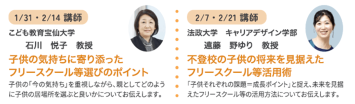 ・学校外の多様な学びの場・居場所選びのポイントが学べる、専門家による講演会