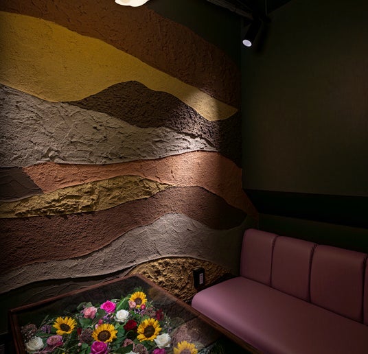 花と壁画のお席