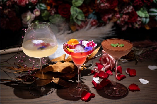 スモークフレーバーカクテルや花をあしらったカクテルなど、季節に合わせたオリジナルカクテルの他に、ワイン、シャンパン、ビール、ノンアルコールカクテルまで幅広く用意。