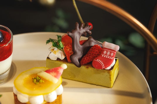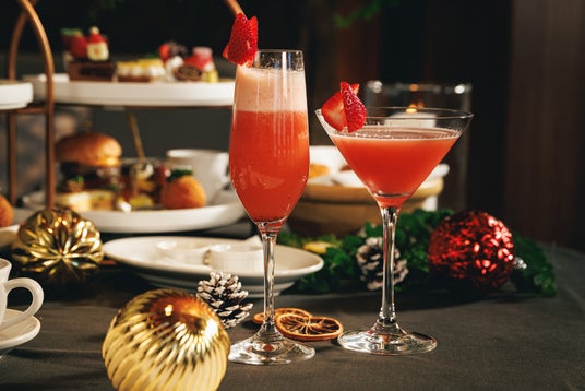 さらに、今回も従来のカフェフリーに加え、シャンパーニュ、カクテル、ノンアルコールドリンクから選べる1ドリンク付きでのご提供となります。苺の香りが華やかに広がる「ストロベリーマティーニ」と「ストロベリーベリーニ」が登場。大人のホリデーシーズンにふさわしい、甘く上品なひとときをお届けします。