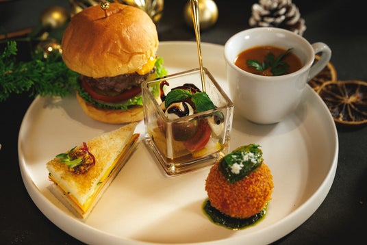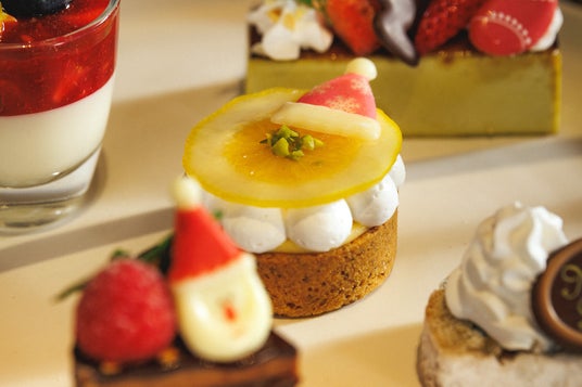 人気のUSDAプライムビーフ*を使用したミニハンバーガーをはじめ、「モルタデッラとチェダーチーズのグルメサンド」や、「オマール海老の濃厚ビスクスープ」など、冬の味覚を贅沢に楽しめるセイボリーに加え、「ピスタチオのカタラーナ」や「ゆず香るシュトーレン」など、心弾むスイーツが並びます。
