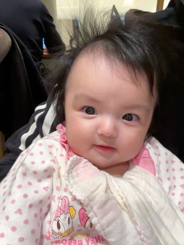 “癒やしパワー半端ない”生後4ヵ月次女の可愛らしいショットを披露しました。