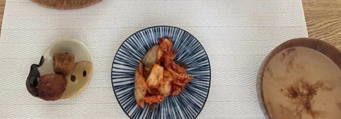 さらにテーブルの上には梅干し、キムチ、お味噌汁が並び、ご飯が進みそうなラインナップに。