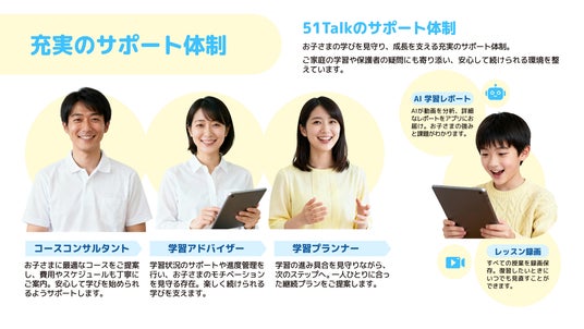 また、日本国内では、コースコンサルタント・学習アドバイザー・学習プランナーの三者が連携する充実したサポート体制を導入。子ども一人ひとりの成長過程を継続的に支援しています。