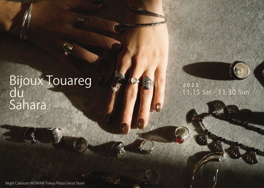 ナイジェルケーボン ウーマン(Nigel Cabourn WOMAN)は、サハラ砂漠に暮らす“青い民”トゥアレグ族が手がける伝統的なシルバージュエリーを紹介するPOP-UP「Bijoux Touareg du Sahara」を、11月15日(土)より東急プラザ銀座店にて開催いたします。
