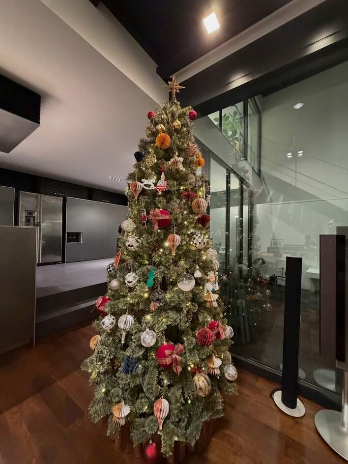公開されたのは、自宅に飾られた大きなクリスマスツリー。