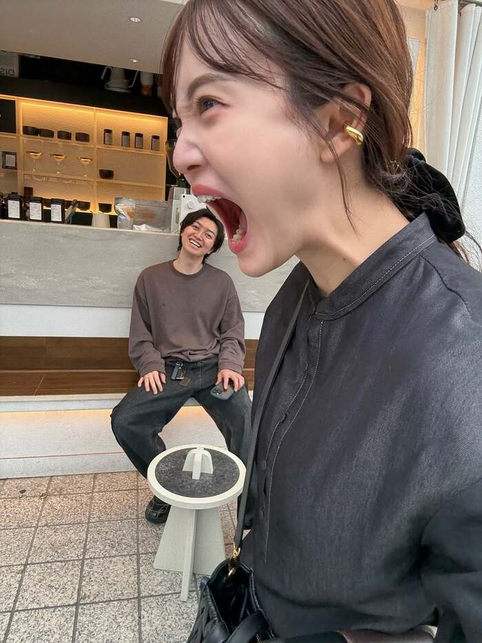 別の写真では、田久保さんが大きく口を開けて、遠近法を使ってまるで夫を頭からパクッと食べているようなショットも!