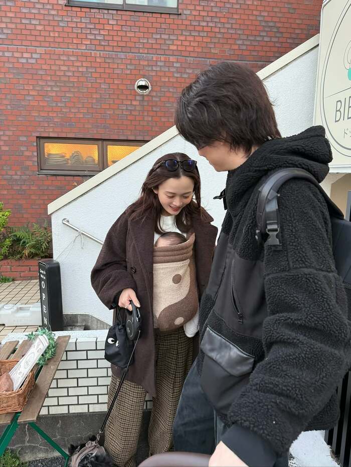 公開された写真には、息子を抱っこした田久保さんが夫と愛犬とともにお出かけをしている様子が。我が子をいとおしそうに見つめる夫婦の姿がとってもほほ笑ましいですね。
