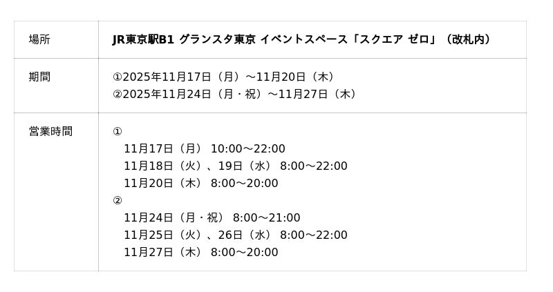 型ぬきしながら食べるバウムクーヘンの専門店〈カタヌキヤ〉は、JR東京駅 グランスタ東京のイベントスペース「スクエア ゼロ」にて、期間限定ポップアップショップを開催いたします。
