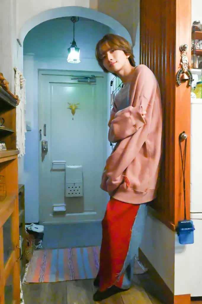 部屋着にしてはだいぶオシャレな組み合わせで、服が好きな光らしいなと思います。